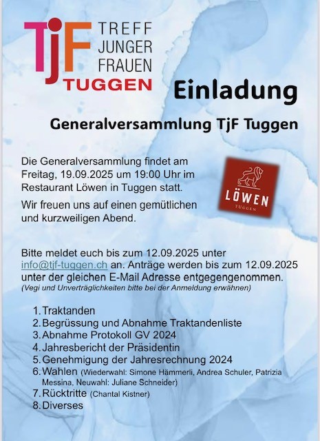Der Verein TjF Tuggen (Treff junger Frauen) wurde im Jahre 1993 von jungen Müttern gegründet.